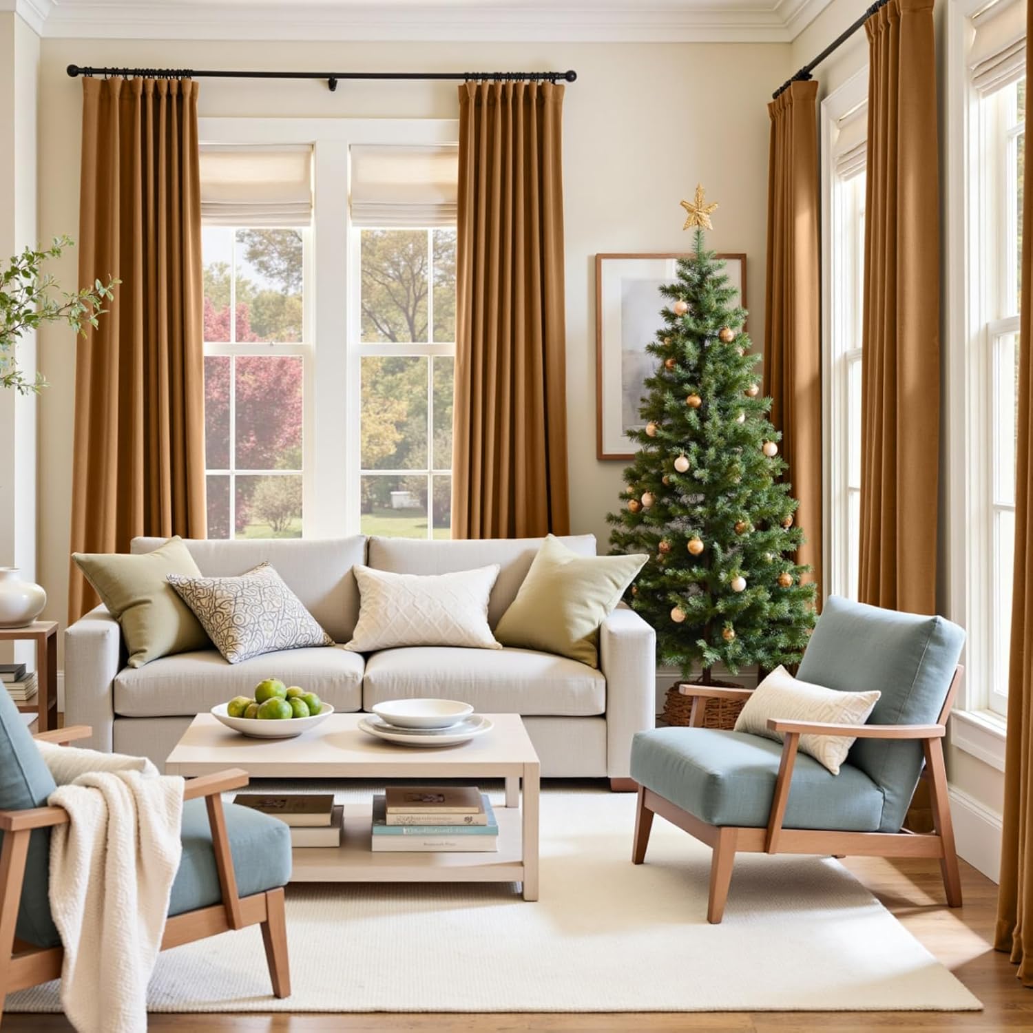 This one serves double duty: heavier curtains actually insulate your windows while creating that enveloping, cozy feeling winter spaces need. I replaced my light linen curtains with thermal blackout curtains in a warm taupe, and my heating bill thanked me.