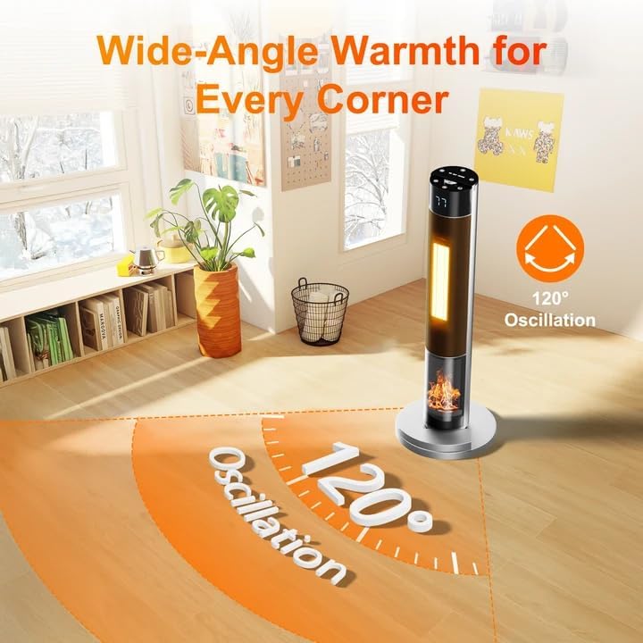 Wide-angle oscillation distributes heat across a broader area, eliminating cold spots and improving comfort by up to 40% compared to stationary heating.