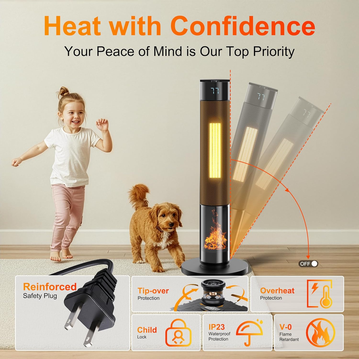 During my testing, I deliberately triggered both the tip-over and overheat protections. The response was immediate—power cut within one second of tipping, and automatic shutdown when I blocked airflow. These aren’t theoretical features; they’re genuinely functional safeguards.