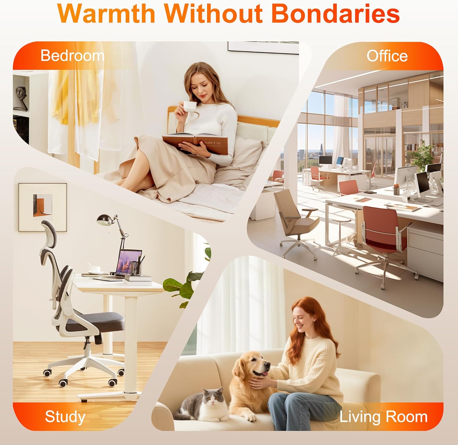 - Home offices needing supplemental heat without noise interference