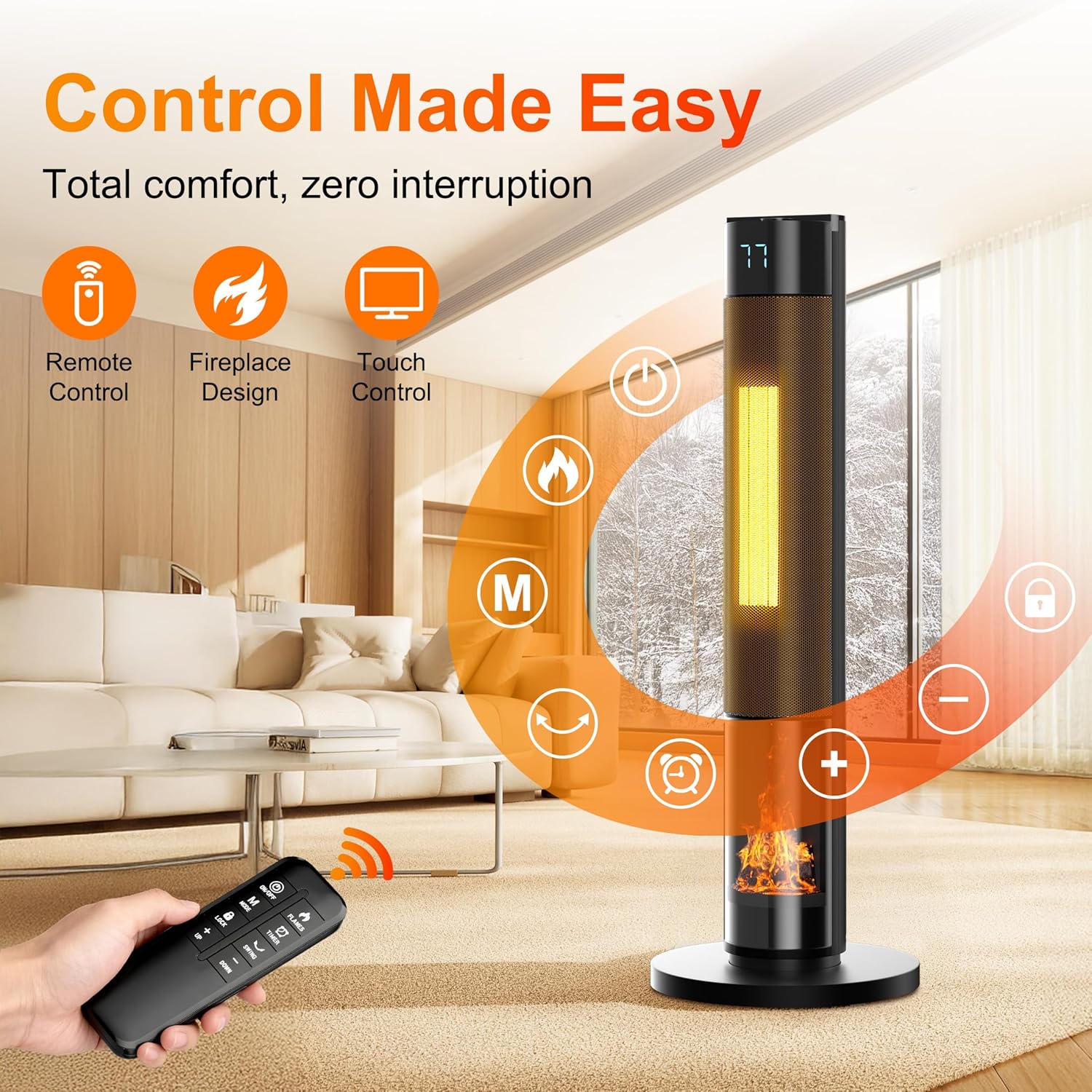 - Attractive 3D flame effect adding unexpected ambiance value